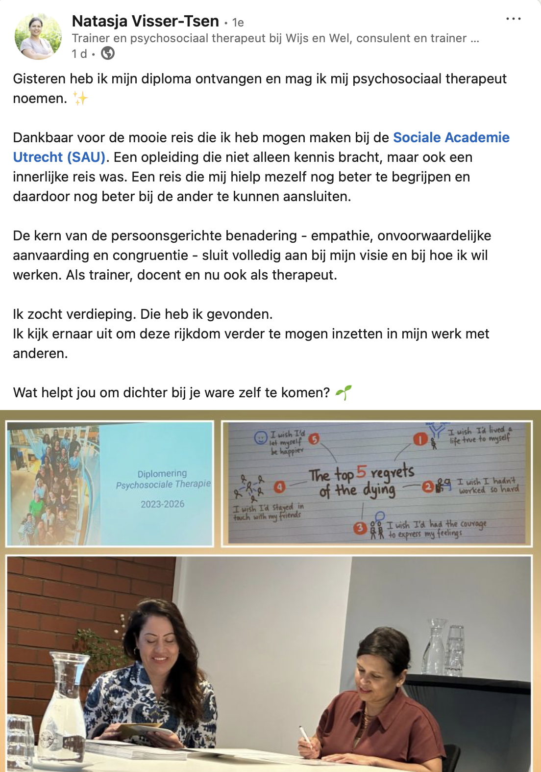 Dit is de eerste Nederlandse postbachelor opleiding Psychosociale Therapie gebaseerd op de Persoonsgerichte psychotherapie.